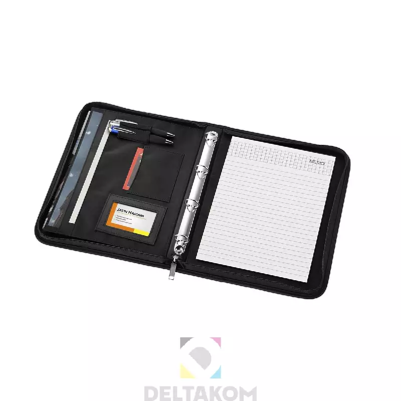 Stanford-deluxe poslovna mapa z zapiranjem na zadrgo in žepi za dokumente. Vključuje 20 listni črtasti blok.