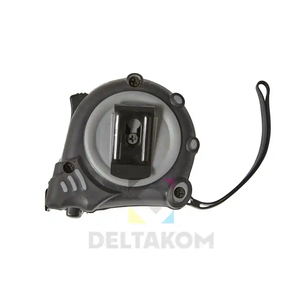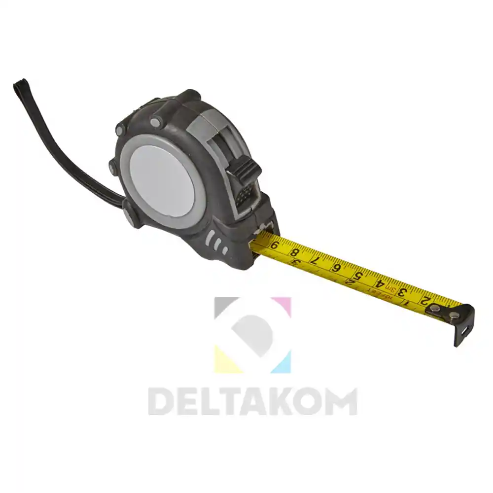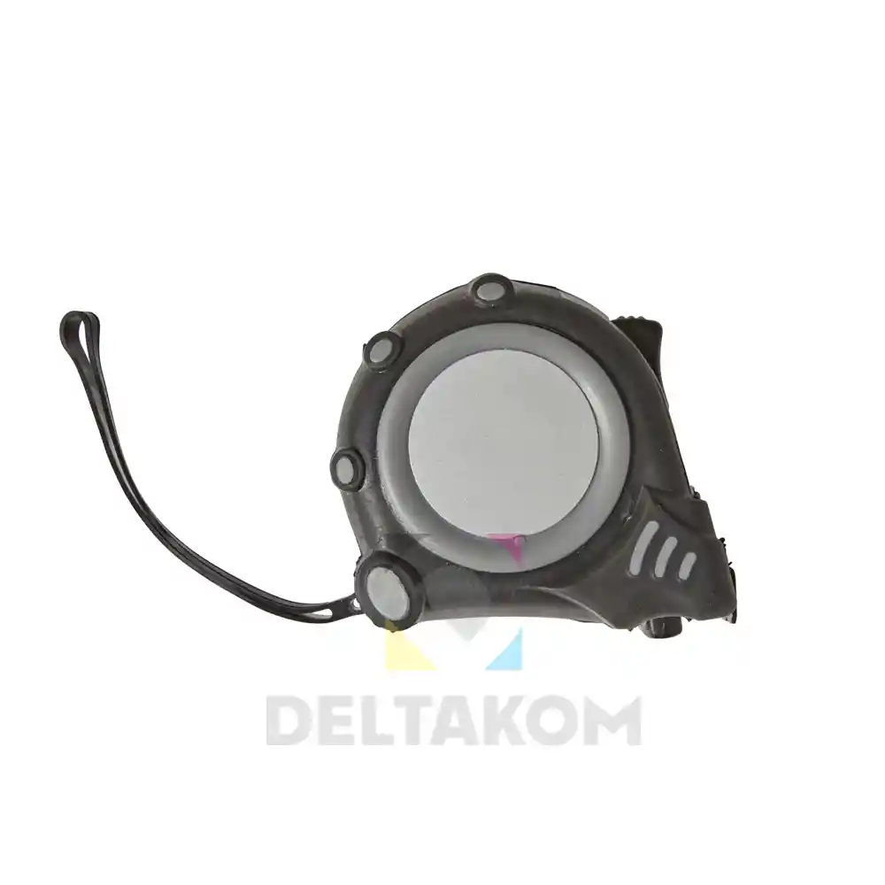 ABS in jekleni trak (3 metre) s skalo v palcih in centimetrih, sponko za pas in zapestni trak. Gumirano ohišje.