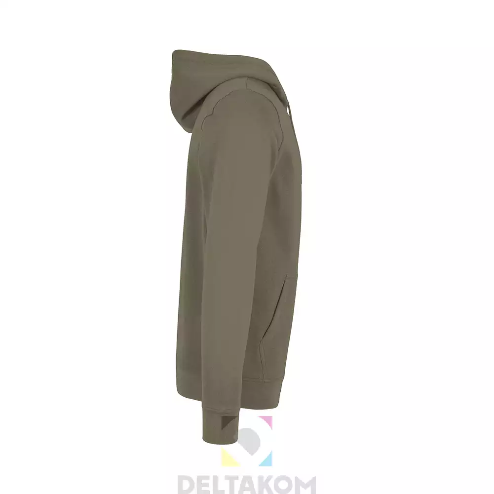 Moški in ženski pulover s kapuco običajnega kroja z neprekinjeno zadrgo spredaj.