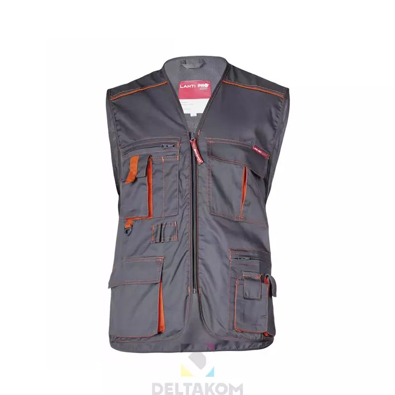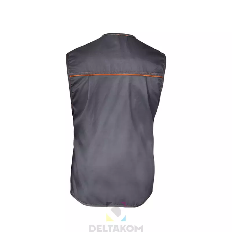 Velikosti S – 3XL. Barva brezrokavnika siva z oranžnimi detajli.