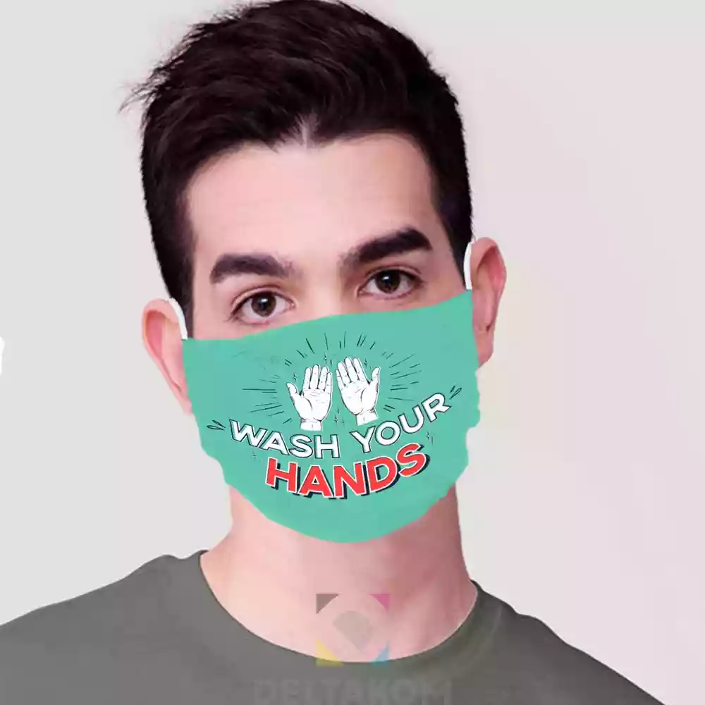 Design: Wash your hands, na turkizno zeleni podlagi.