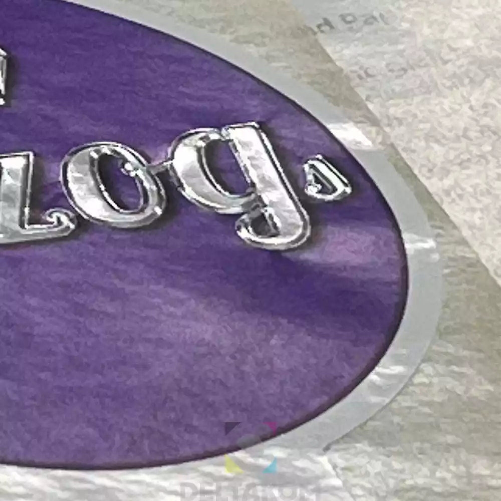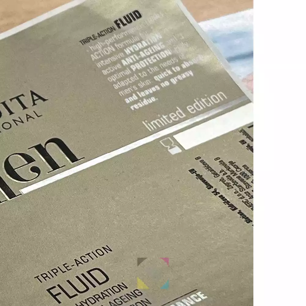 4/0 barvni digitalni tisk + tisk z SREBRNO folijo. Debelina etikete 90g.