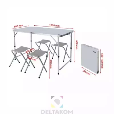 KAMPIRNI SET MIZE IN 4 STOLOV ZLOŽEN V KOVČEK