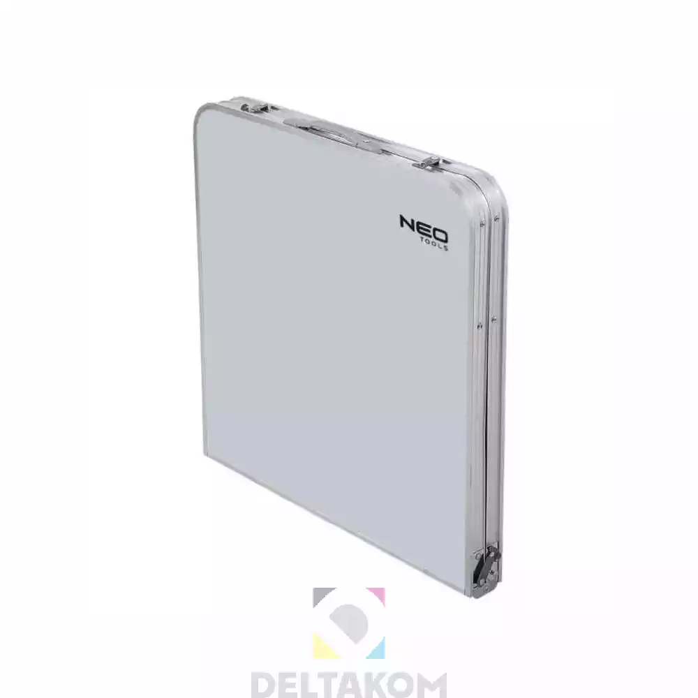 Set za kampiranje 63-159 NEO sestavljajo miza in štirje stoli. Mizna plošča je izdelana iz trpežnega MDF-ja, struktura pa iz lahkega aluminija. Ogrodje tabureja je izdelano iz trdnega jekla v kombinaciji s trpežnim poliestrom. Komplet se zloži v kompakten kovček s transportnim ročajem za lažje prenašanje, ima dimenzije 60 x 60 x 10,5 cm.