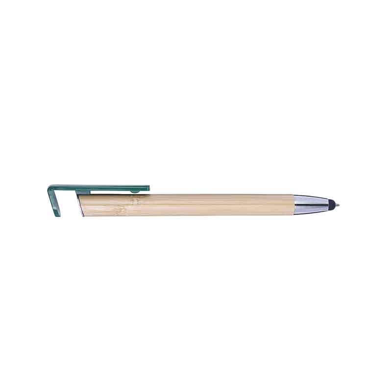Bambus kemični svinčnik z gumijasto konico za TOUCHSCREEN zaslone ter plastično konico in sponko.