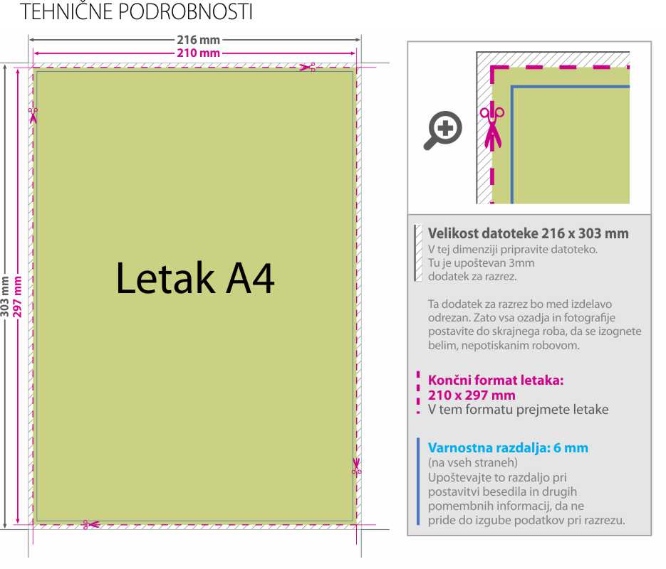Pred vami je ponudba izdelave letakov v formatu A4 (210 x 297 mm).