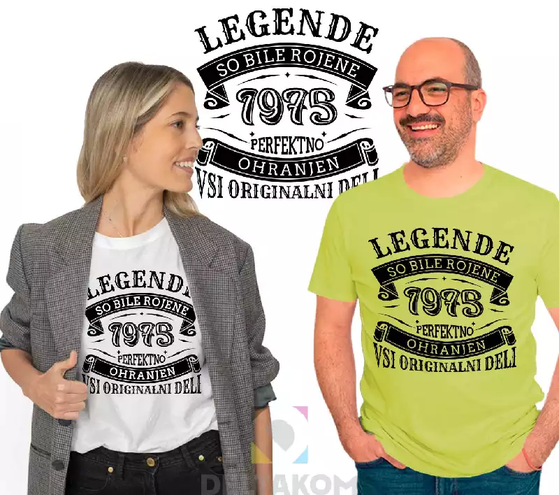 Majica rojstni dan LEGENDE je popolno darilo za posebne priložnosti. Enobarvni dizajn z napisom *“LEGENDE SO BILE ROJENE – PERFEKTNO OHRANJEN – VSI ORIGINALNI DELI”* bo zagotovo navdušil vsakega slavljenca. V naročilu preprosto vpišite želeno letnico rojstva in ustvarite osebno obarvano darilo.
