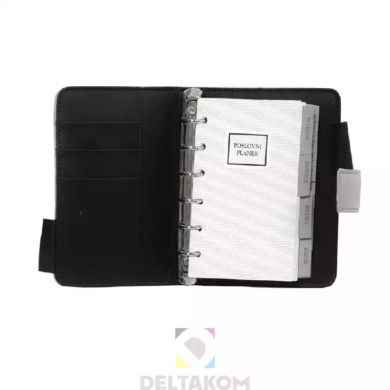 Organizer DM s tekstilnimi poliesterskimi platnicami v srebrni barvi.