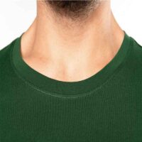S prišitim kontrastnim trakom na vratnem delu pri barvnih majicah in belim trakom pri belih majicah.