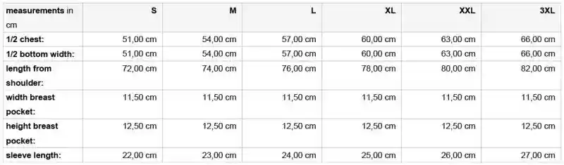 Velikosti: S – M – L – XL – XXL – 3XL – 4XL – 5XL.