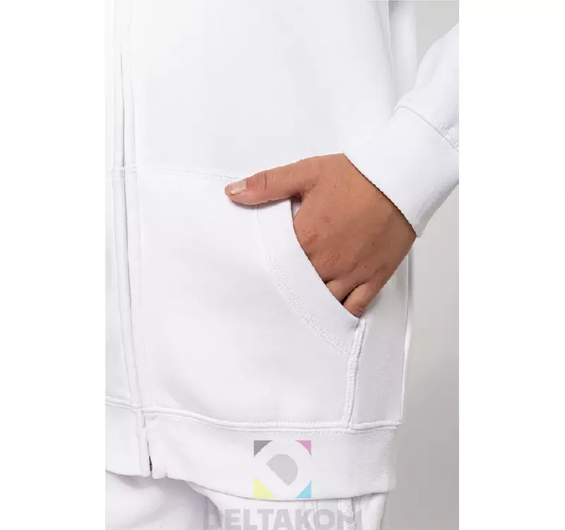 rebraste manšete in rob, kenguru žep z dostopom za slušalke,