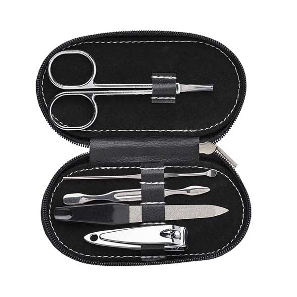škarje, pilico za nohte, škarje za nohte, potiskalnico za kožico in orodje za obnohtno kožico.