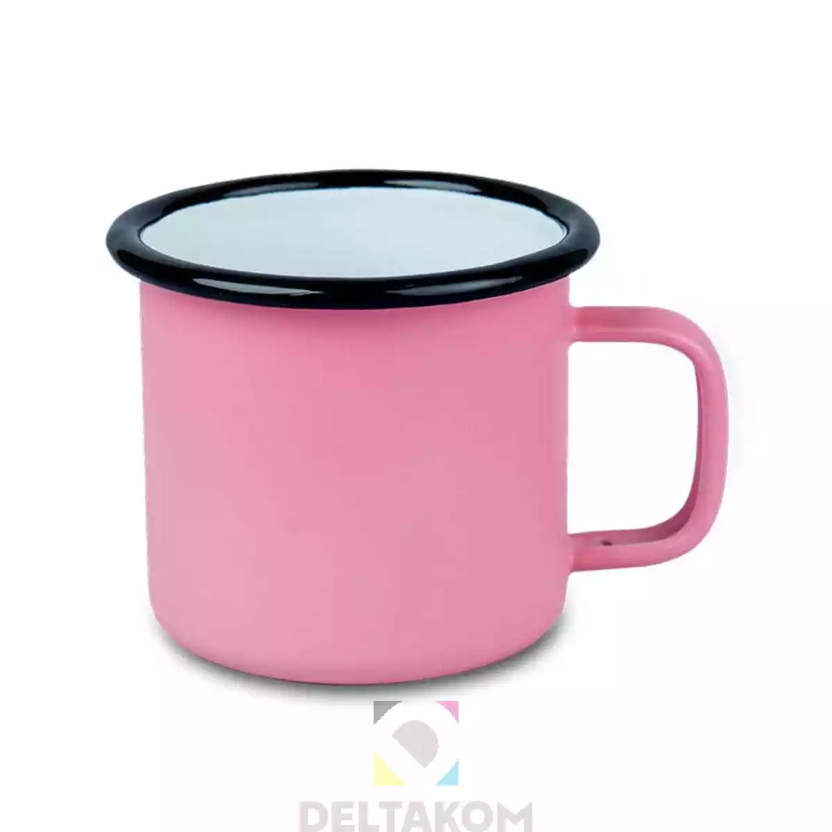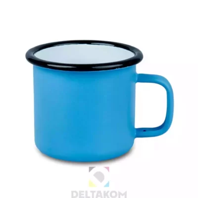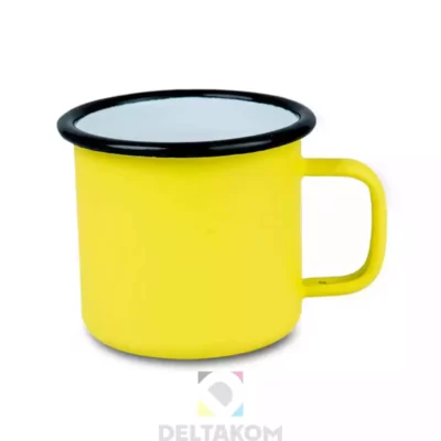 Kovinska, emajlirana bela sublimacijska skodelica barvna s črnim robom. 360 ml.