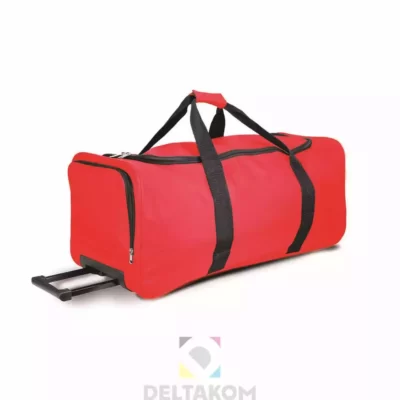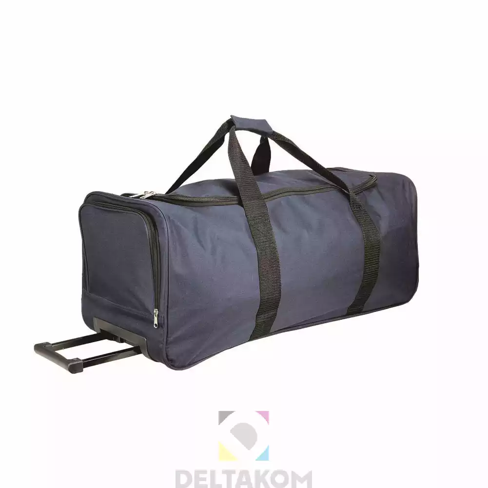 Velika športna torba za voziček s kolesi iz 600D poliestra s PVC podlago. Velika zgornja odprtina. Stransko žepno držalo za čevlje. 5 cm visok trak okoli telesa, SBS zadrge.