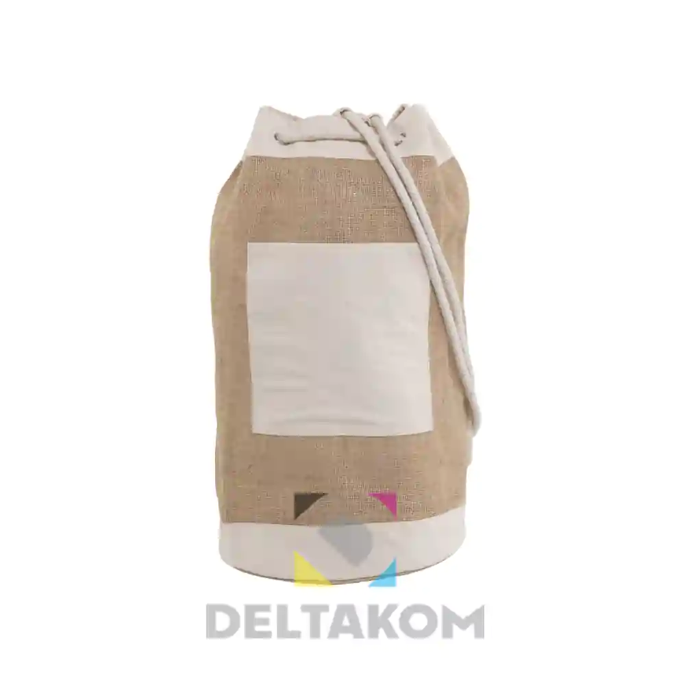 Juta športna torba s kovinskimi očesci, bombažno vrvico in sprednjim žepom.