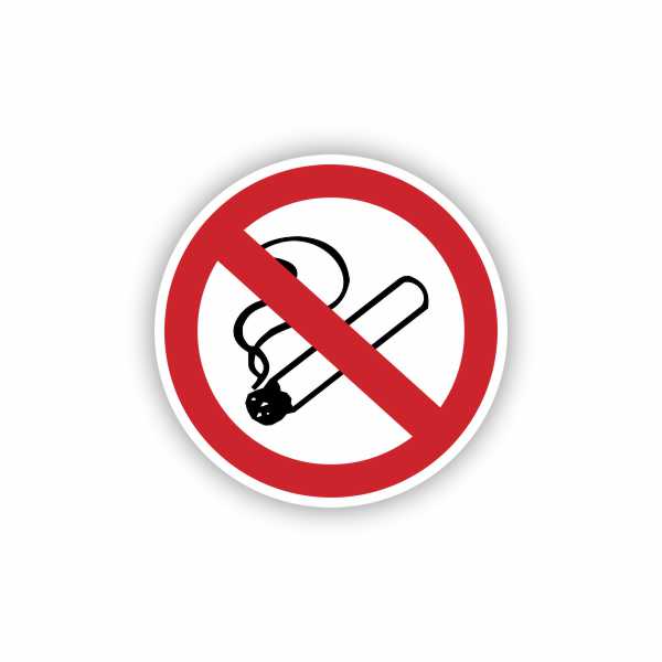 Okrogla PVC varnostna nalepka Kaditi prepovedano premera ø 9 cm z močnim lepilom.
