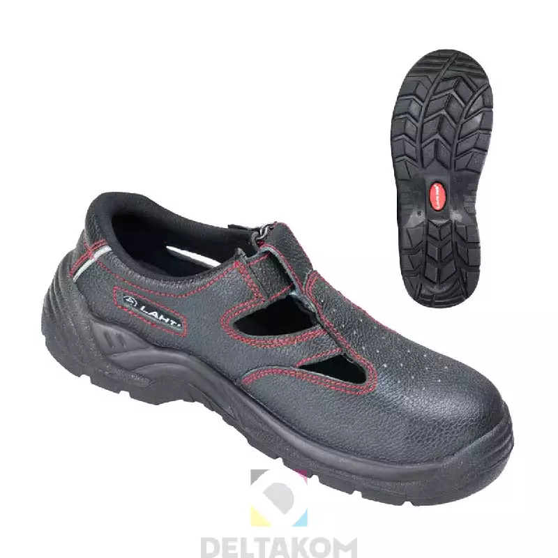 Sandali LAHTI PRO v črni barvi, z rdečimi šivi.