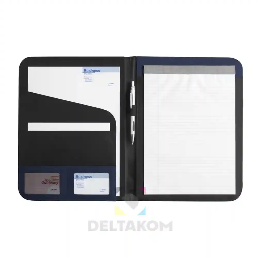 Konferenčna mapa iz PU materiala A4 v črno-modri barvi.