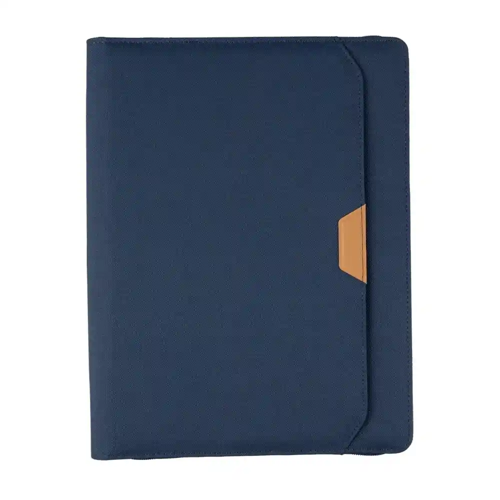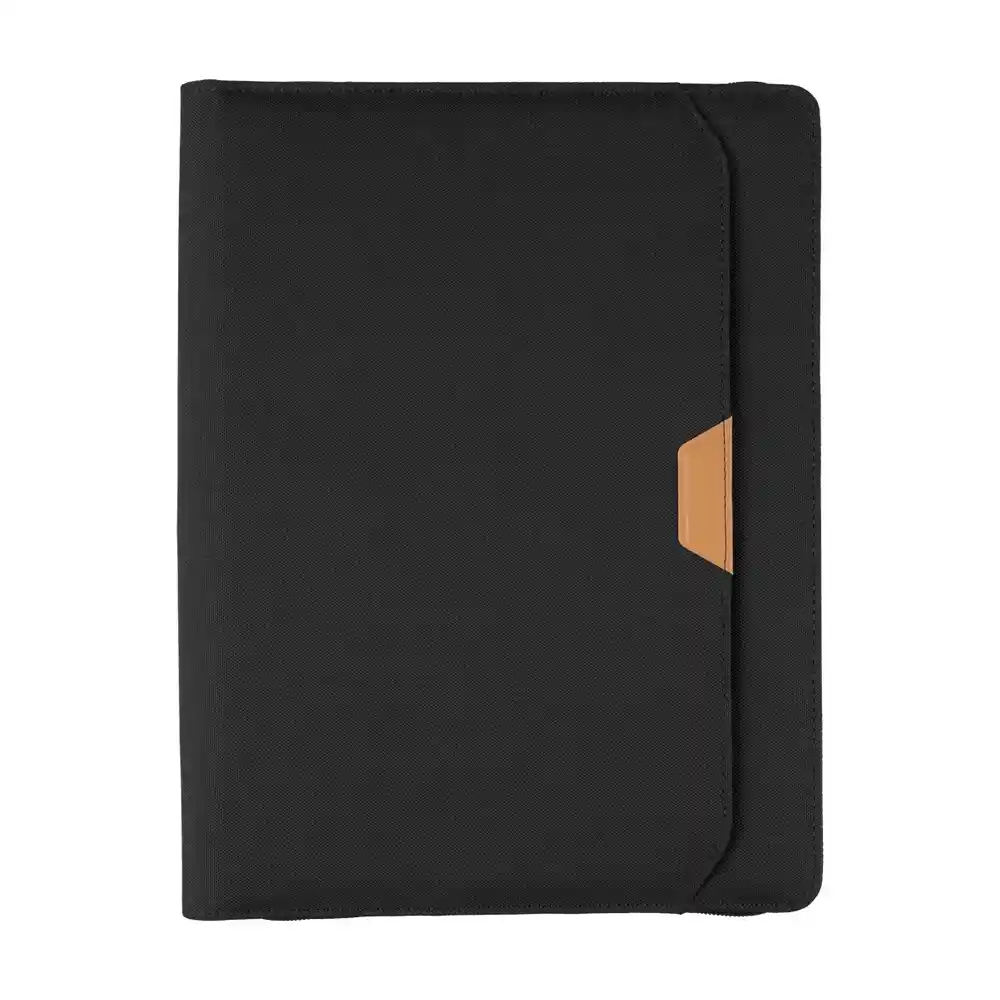 Konferenčna mapa pribl. velikost A4, vključuje blok z 20 črtastimi listi, predelki za dokumente, držalo za telefon, izdelek iz RPET, pisalo ni vključeno.