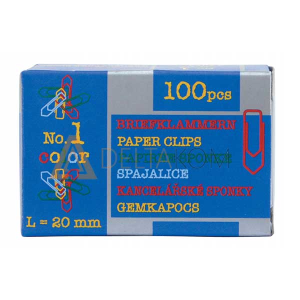 Barvne sponke za papir Niko, 20mm, 100 kos v škatlici.