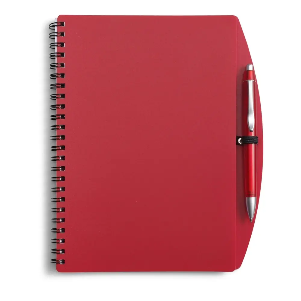 Beležnica (približno A5, 65 listov) s krogličnim peresom, spiralna vezava Material: PP (0,7 mm), kovina, papir. Dimenzije: 21 x 17,5 x 0,7 cm.