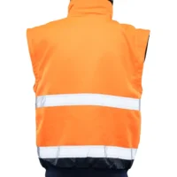 Izolacijski material: snemljiva podloga iz umetnega krzna, 100 % poliester, gramatura 500 g/m2. Podloga: 100 % poliester 120 g/m2. Konstrukcija/šivanje: možnost izdelave telovnika – snemljivi rokavi z odsevnimi trakovi, ovratnik dodatno izoliran z izolacijskim materialom iz umetnega krzna.