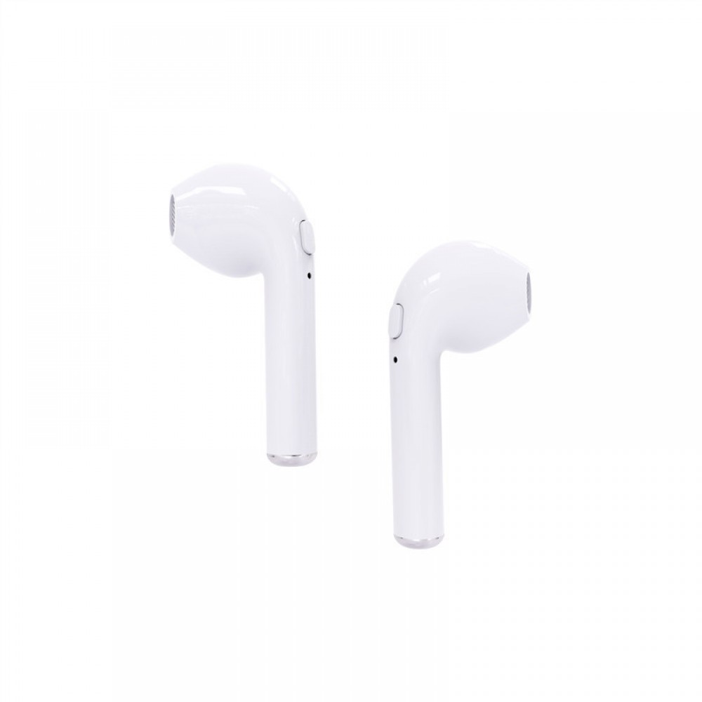 TWS i7 Bluetooth slušalke v beli barvi. Brezžične stereo slušalke z vgrajenim mikrofonom, do 3 ure predvajanja in udobno uporabo. Idealne za glasbo in klice.