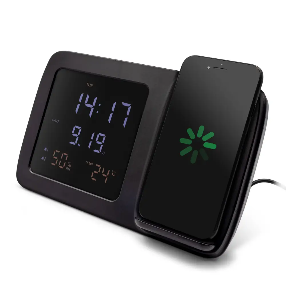 Brezžični polnilnik 5 W–15 W iz ekskluzivne kolekcije večfunkcijska digitalna ura Isha – Elegantno in zanimivo promocijsko darilo.