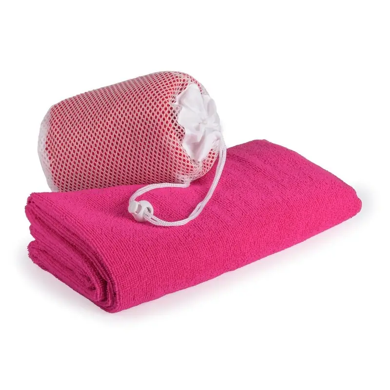 100x50cm brisača iz vpojnih in mehkih mikrovlaken 185g/m2 v različnih barvah. V praktični mrežasti vrečki z nastavljivim dodatkom. Material: mikrovlakno 185 g/m2. Dimenzije: dimenzije: 50 x 100 cm (zloženo Ø9 x 17 cm).