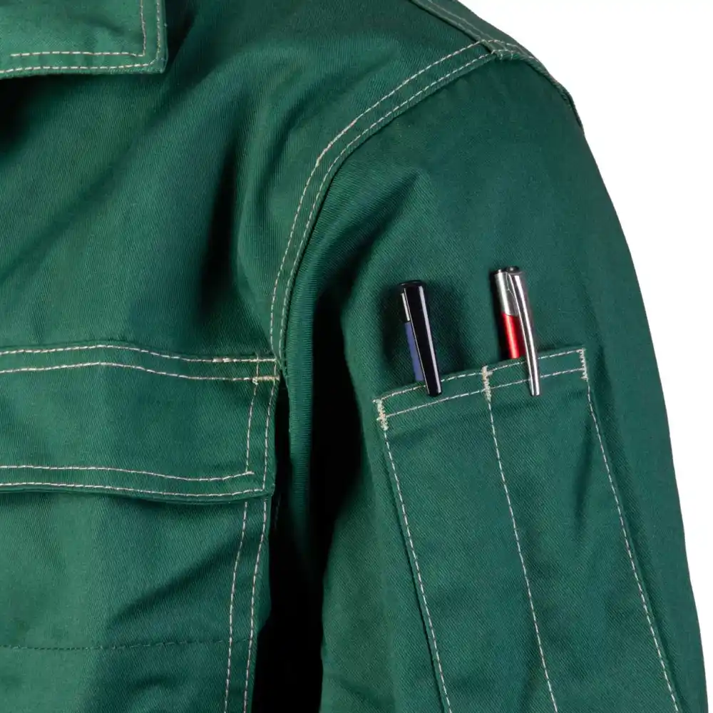 zapenjanje z gumbi, prekrita s ploščo, ima na hrbtu zaviheke za večjo svobodo gibanja, veliko število zaklepnih šivov na mestih, ki so še posebej izpostavljeni raztrganju, zračniki, dva zgornja žepa, od katerih je eden prekrit s ploščo, z zapenjanjem na velcro, žep za mobilni telefon, manšete z zapenjanjem na gumbe, dvojni šivi, šivani z močno vidno nitjo, elastičen trak na dnu majice, da majica ne štrli in ščiti pred vetrom, izdelana iz visokokakovostnega materiala, ki zagotavlja stabilnost barve in velikosti po večkratnem pranju, žep za pisalo, enojni in dvojni šivi, šivani z močno nitjo.