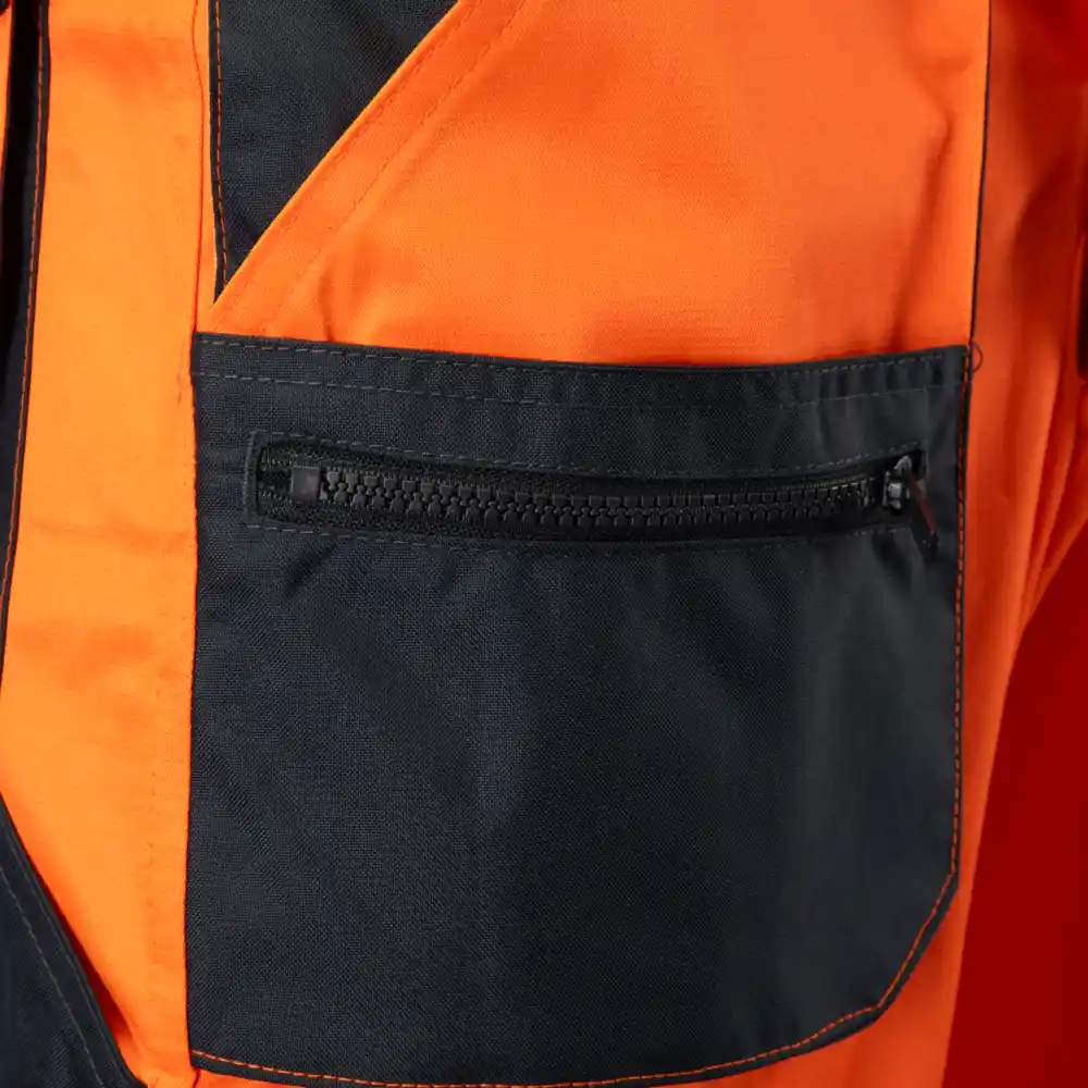 Žepi: žep za dokumente z zadrgo, žep za merilni trak, ojačeni žepi z velcro zaponko, ojačeni stranski žepi, žep za mobilni telefon, dva stranska žepa, ergonomski žep za kolenske blazinice iz OXFORD-a, dva žepa na zadnjem delu hlač, z velcro zaponkami.