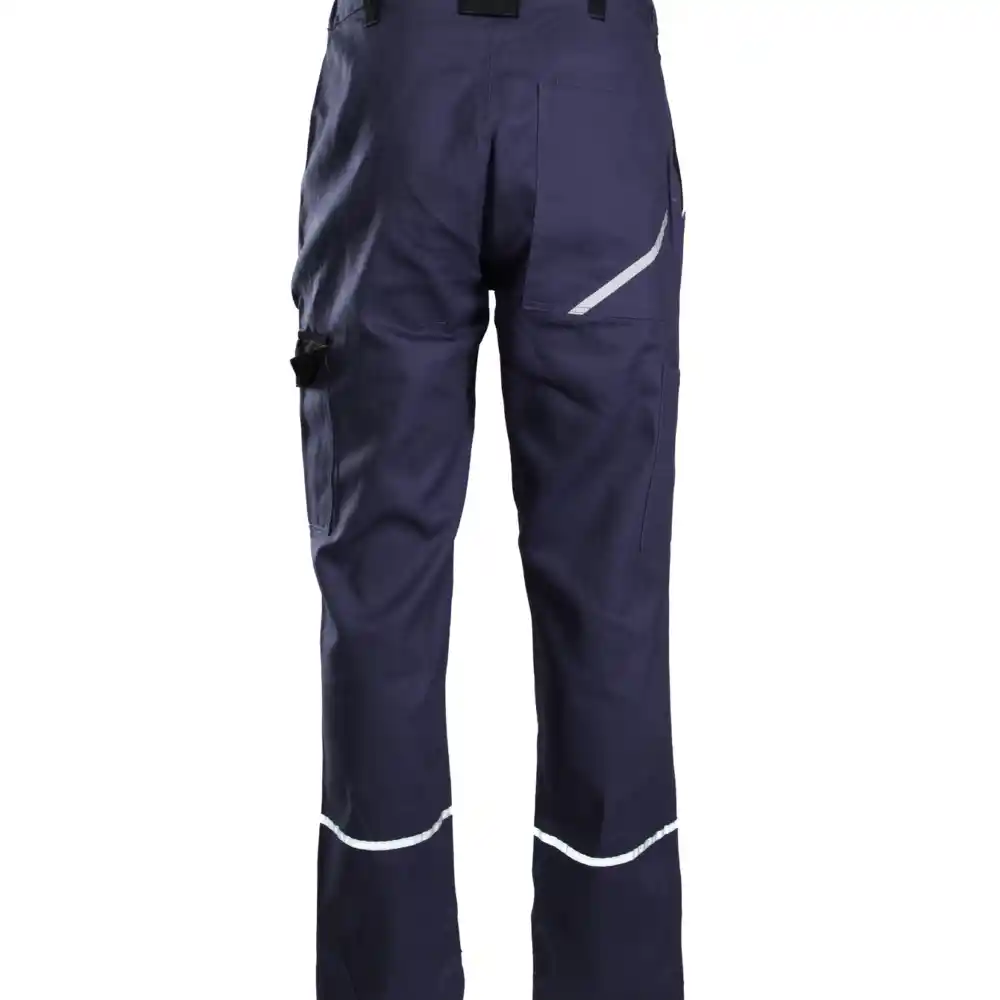Material: izdelan iz visokokakovostnega materiala, ki zagotavlja stabilnost velikosti tudi po večkratnem pranju. Konstrukcija/šivanje: barvni vstavki, hlače z zančkami za pas. Žepi: dva stranska žepa, žep za dokumente, žep na zadnjem delu hlač, žep za merilni trak. Odsevni elementi: odsevni robovi, odsevne črte na spodnjem delu hlačnic.