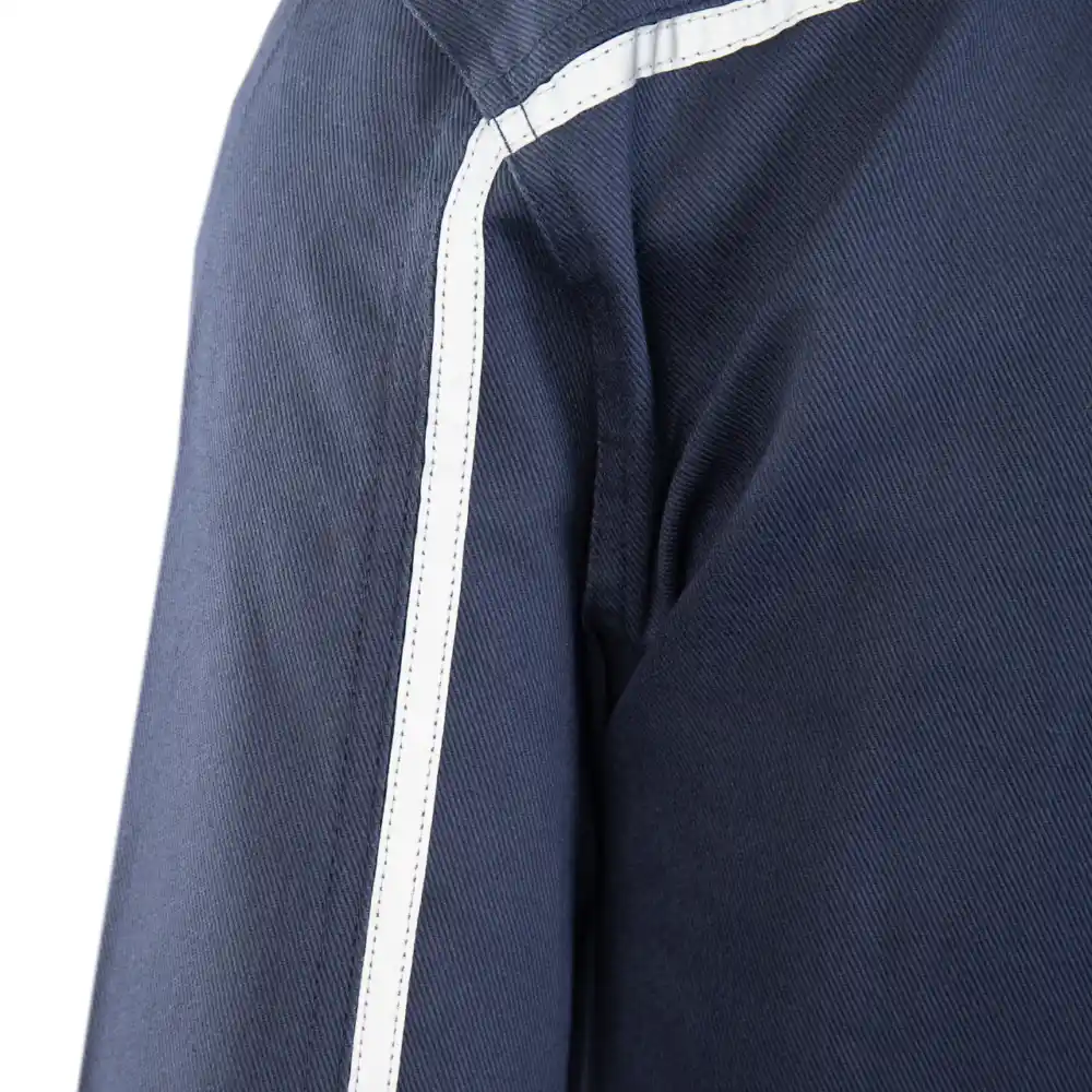 Način zapiranja: zapenjanje z gumbi, prekrito s ploščico. Material: 100 % bombaž, izdelano iz visokokakovostnega materiala, ki zagotavlja stabilnost velikosti tudi po večkratnem pranju. Konstrukcija/šivanje: podaljšan zadnji del. Žepi: zgornji žepi se zapirajo z velcro trakom. Rokavi/manšete: manšete rokavov so nastavljive z elastičnim trakom. Odsevni elementi: odsevni vstavki.