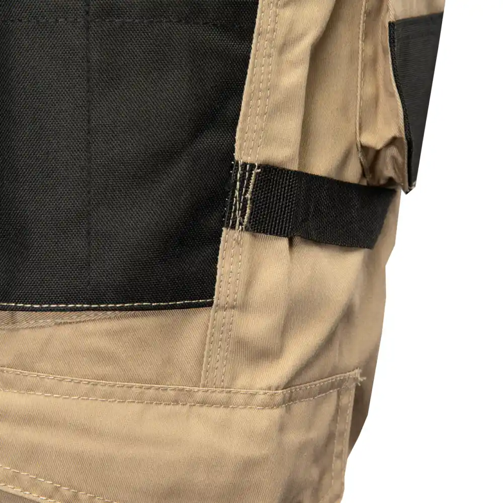Žepi: žep z zadrgo, dva žepa na zadnjem delu hlač, prostrani žepi, dva stranska žepa, ojačeni stranski žepi, dva žepa za pisala, žep za dokumente, žep za merilni trak, ergonomski žep za kolenske blazinice iz OXFORDA. Nastavitev pasu: nastavljiv pas z gumbi.
