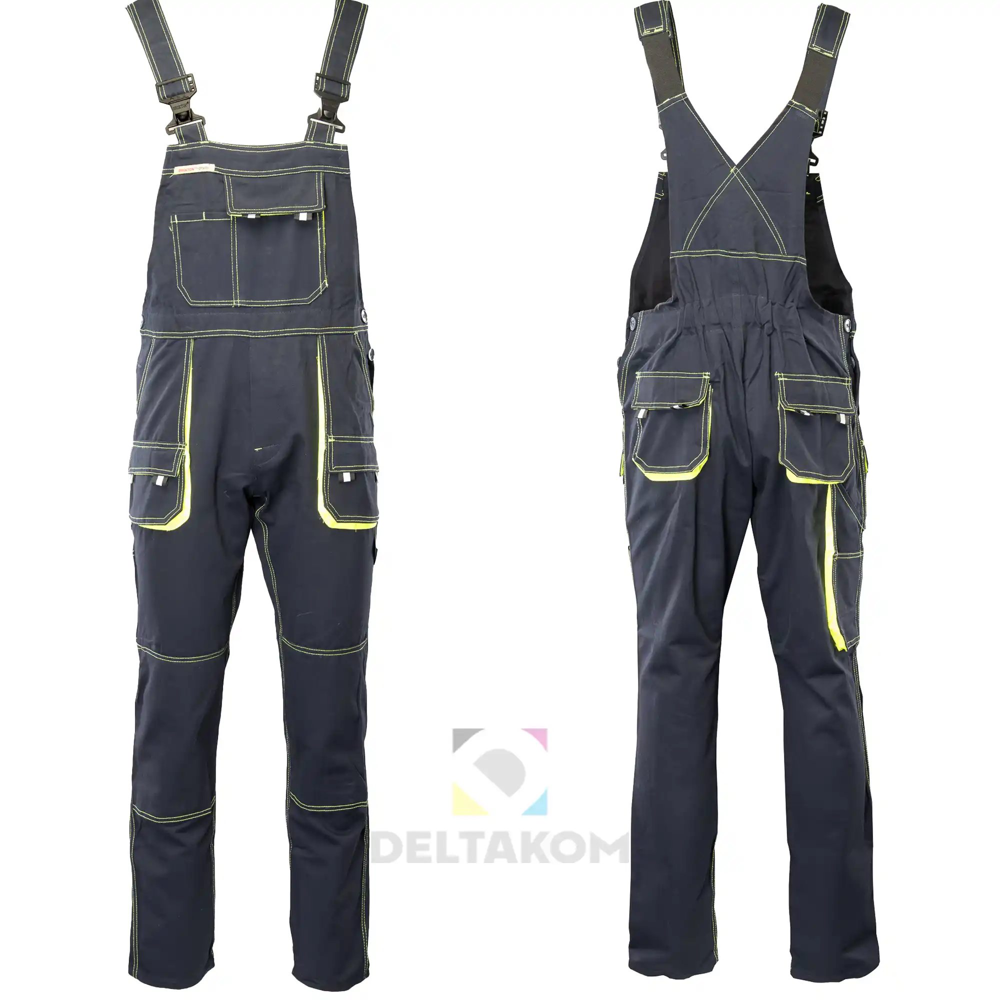 Naramnice: dolge, široke, nastavljive naramnice. Material: izdelane iz visokokakovostnega materiala, ki zagotavlja stabilnost velikosti tudi po večkratnem pranju. Konstrukcija/šivanje: dvojni šivi, šivani z močno vidno nitjo, veliko število zapornih šivov na mestih, ki so še posebej izpostavljeni raztrganju, hlače z zančkami za pas, zančka za pas za kladivo.