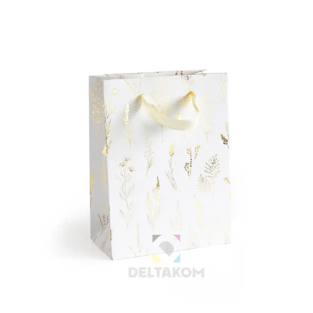 - bel papir z vzorcem travniških rastlin iz metalizirane zlate folije.