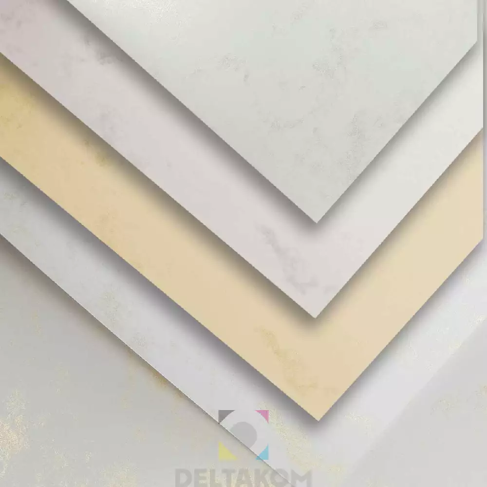 Gladek karton z vzorcem marmorja. Na voljo v beli, krem, zlati, srebrni in zeleni barvi.