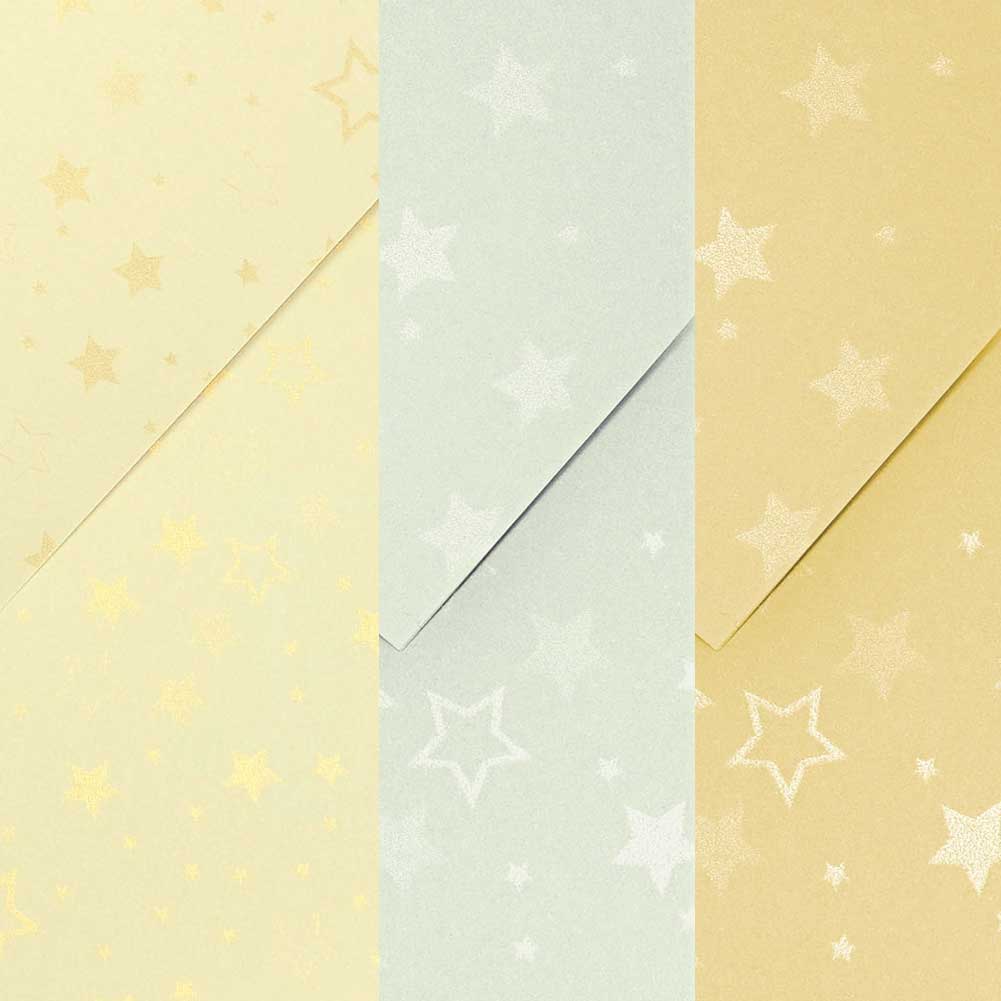 siva s srebrnimi zvezdami, zlata s srebrnimi zvezdami, krem z zlatimi zvezdami.