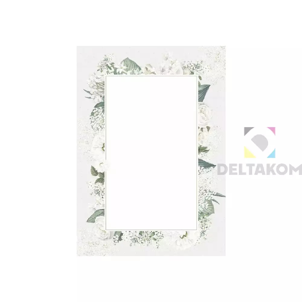 Kakovosten enostranski saten papir BIANCO z vzorcem rož. Priporočljivo za laserske in brizgalne tiskalnike.