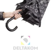 Črn dežnik CALEB z robustnim ogrodjem, vetroodporno konstrukcijo in preprostim odpiranjem za zanesljivo zaščito pred dežjem.