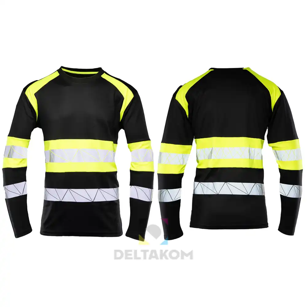 Material: izdelan iz visokokakovostnega materiala, ki zagotavlja stabilnost barve in velikosti po večkratnem pranju, 55 % bombaž, 45 % ekološki poliester, 170 g/m2. Konstrukcija/šivanje: barvni vstavki, logotip SEVEN KINGS, trpežni šivi, šivani z močno nitjo, okrogel izrez. Odsevni elementi: dvojni odsevni trakovi za večjo vidljivost, odsevne črte s horizontalnim termičnim prenosom.