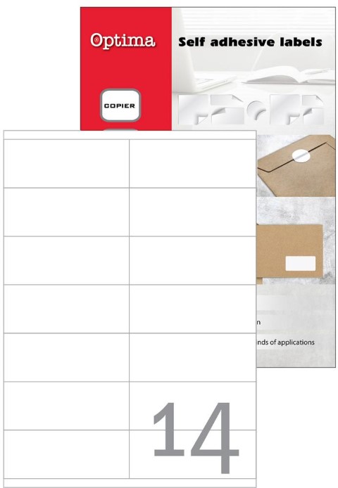 Etikete A4 laser-inkjet 105 × 41 mm, samolepilne, 32 kos na listu, vsestranske za pisarniško in domačo uporabo.