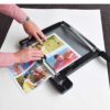 Rezalni vodniki za različne formate papirja na delovni mizi.