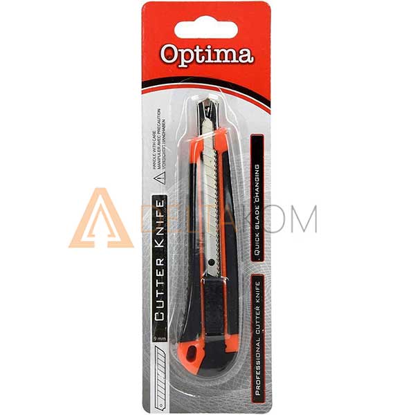 Grafični nož z rezilom 9 mm. Trden ročaj, delno gumiran za boljši oprijem.
