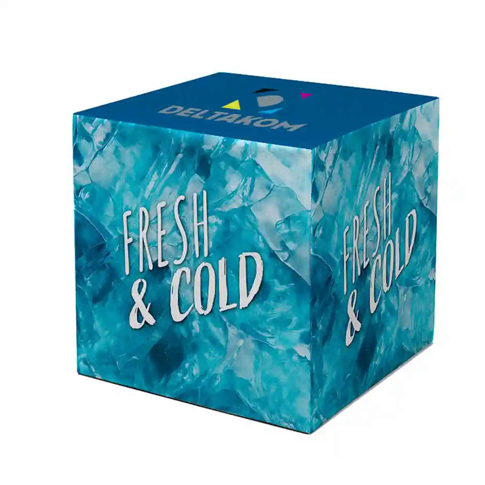 Idealen za uporabo na dogodkih, razstavah ali v gostinskih prostorih. Lahek, a močan, dostavljen je v enem kosu in pripravljen za uporabo. Preprosto namestite natisnjeno grafiko na penasto kocko in spodnji del zaprite z ježkom. Grafiko lahko odstranite v le nekaj sekundah in jo za naslednjo promocijo zamenjate z novo. Združite praktično sedenje z dobro vidno blagovno znamko.