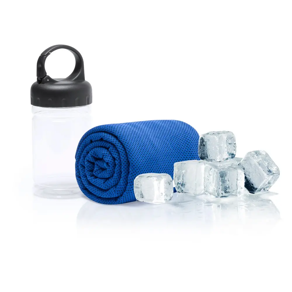 brisača velikosti 90×30 cm iz materiala SoftCool Extreme za hlajenje z zaščito UV50. kakovost 160 g/m2 in v enem prozornem kovčku z vgrajenim ročajem za prenašanje. Material: najlon (55 %), poliester (45 %), 160 g/m2. Dimenzije: Ø6,5 x 16,8 cm, razgrnjen 30 x 90 cm.