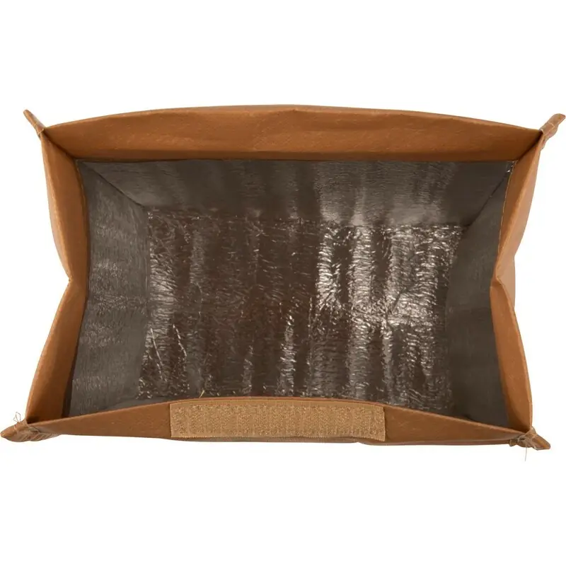 Hladilna vrečka, ki je videti kot rjava papirnata vrečka Material: laminirana netkana tkanina. Dimenzije: 19,1 x 10,9 x 26,3 cm.