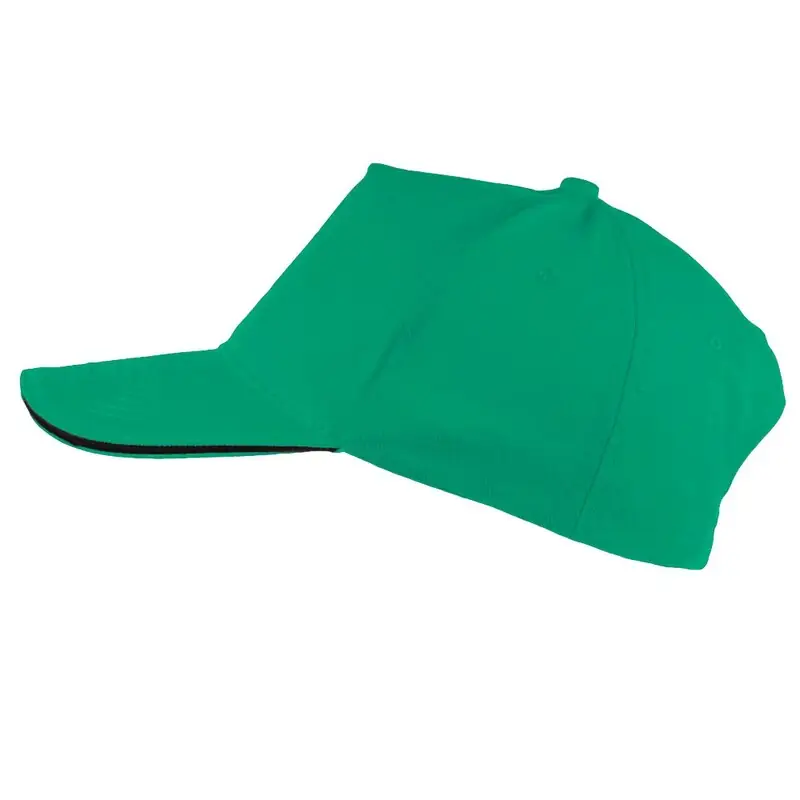 kapa s petimi ploščami iz brušenega bombažnega materiala. V široki paleti svetlih tonov, z barvnim sendvičem in oblazinjenim vizirjem. Vezene prezračevalne odprtine in nastavljivo zapiranje z velcro. Material: 100 % brušen bombaž. Dimenzije: Ø18,5 cm, vizir 17,5 x 7,5 cm.