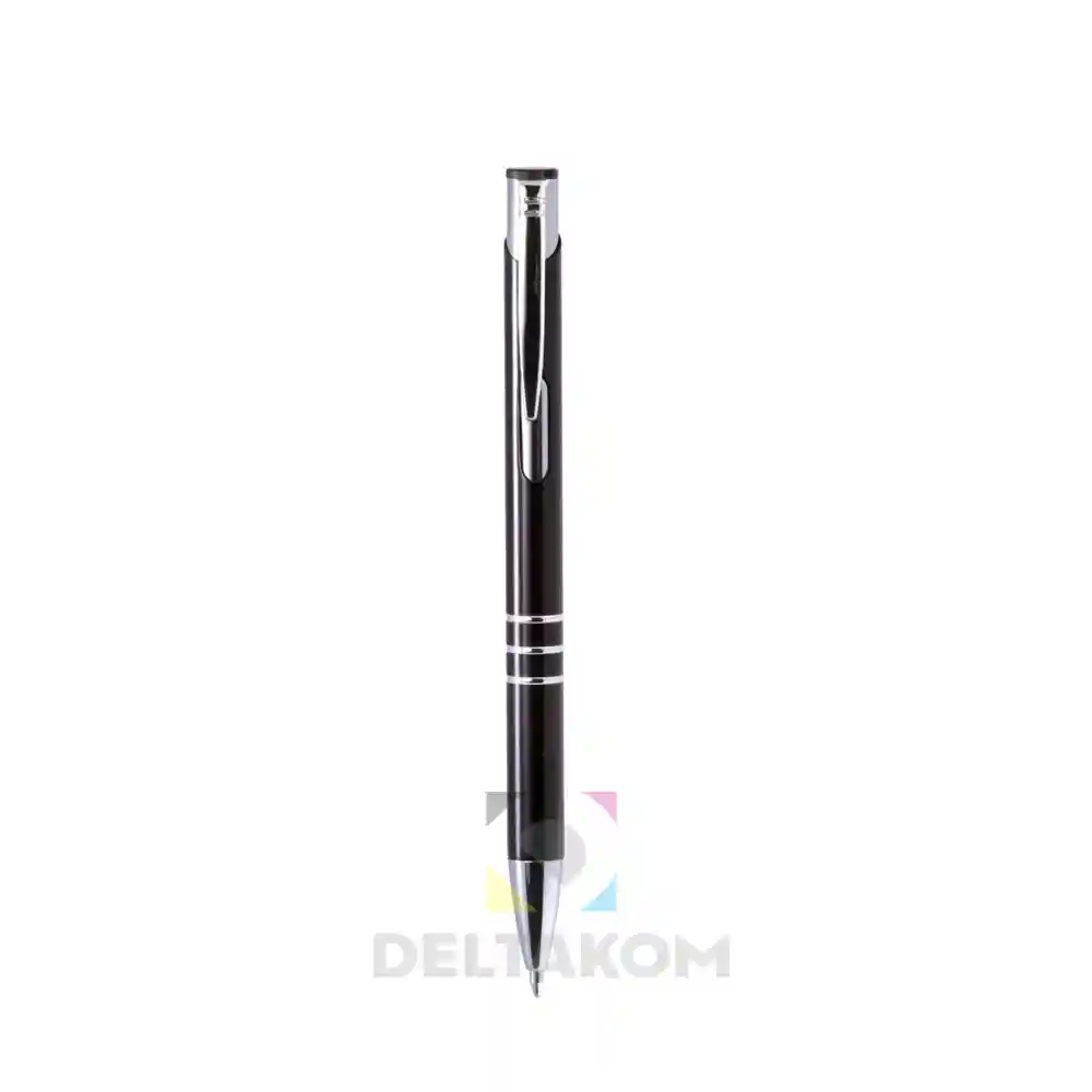 Eleganten dizajn: Črn aluminijasti kemični svinčnik s srebrnimi detajli in modernim zaključkom