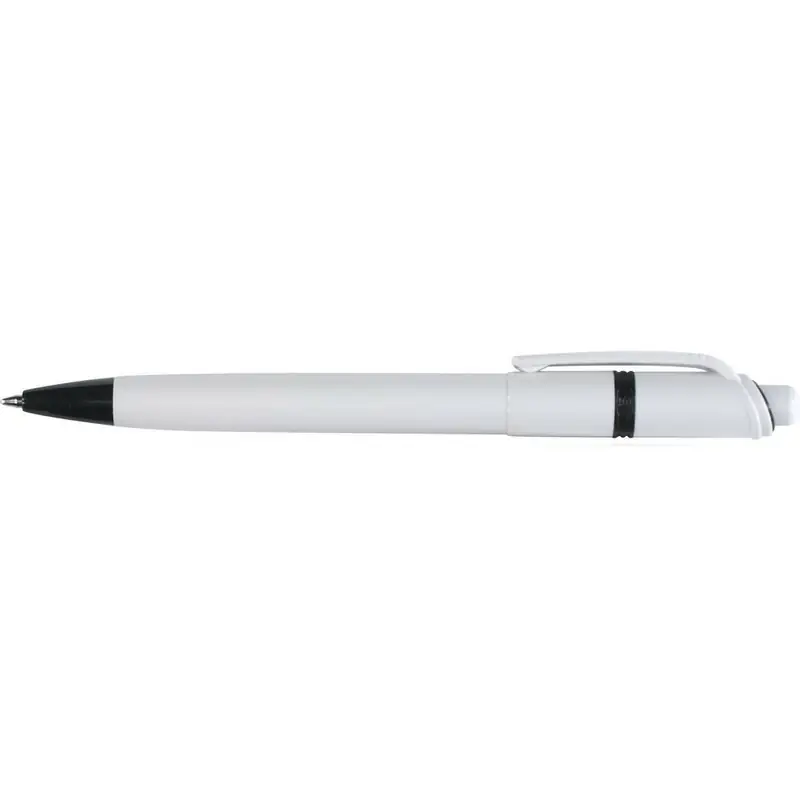 Kemični svinčnik Ducal, belo ohišje, barvni poudarki, piše v modri barvi, opremljen z nemškim dokumentnim črnilom, izdelano iz ABS, plastike, niklja, kovine: Material: ABS, plastika, nikelj, kovina. Dimenzije: Ø1,5 x 13,7 cm.